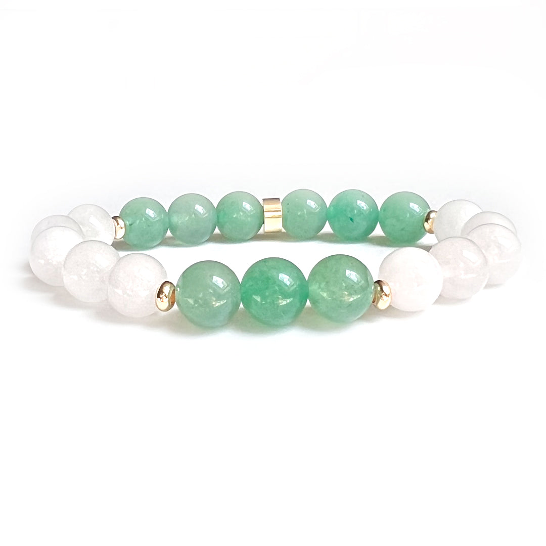 White Jade & Aventurine crystal bracelet with gold.