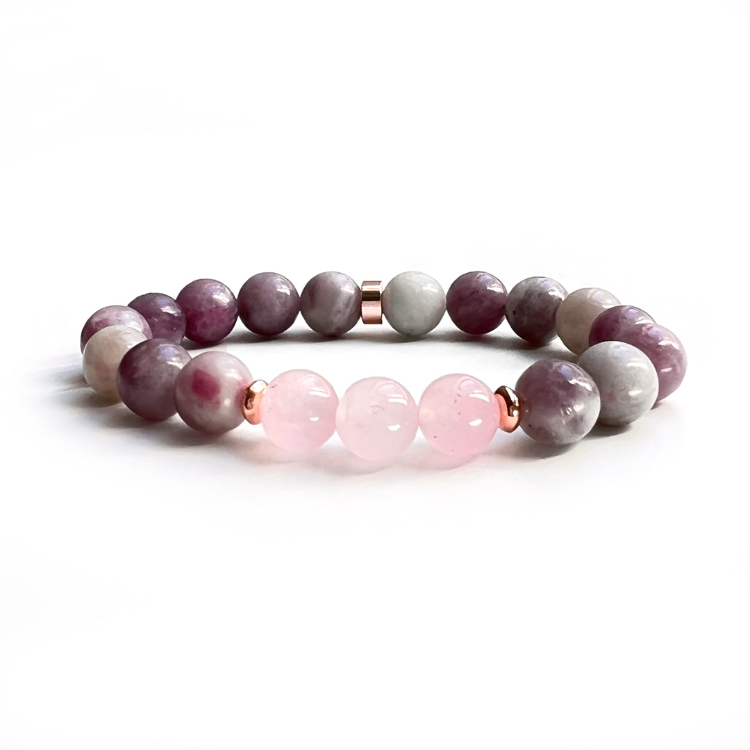 Violet Jasper & Rose Quartz crystal bracelet with rose gold.