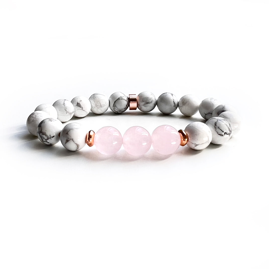 ZenCity Signature bracelet - Howlite & Rose Quartz crystals with rose gold.
