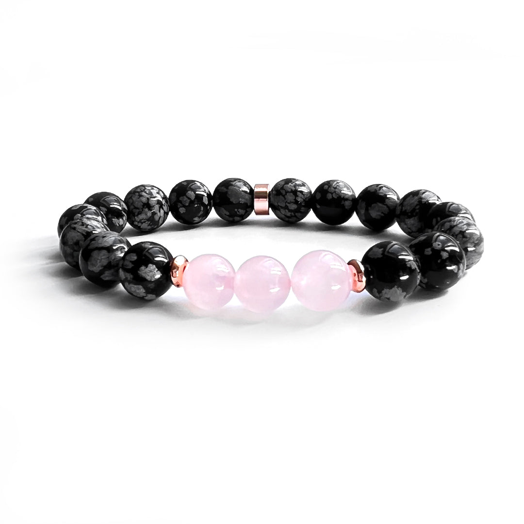 ZenCity Signature bracelet - Snowflake Obsidian & Rose Quartz crystals with rose gold.